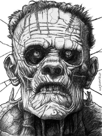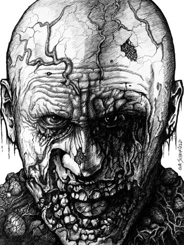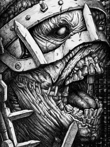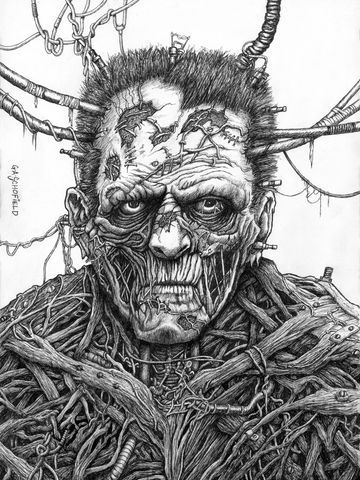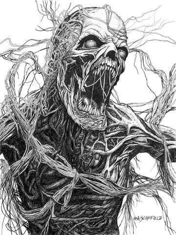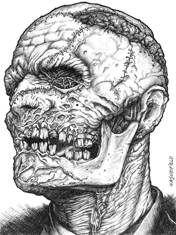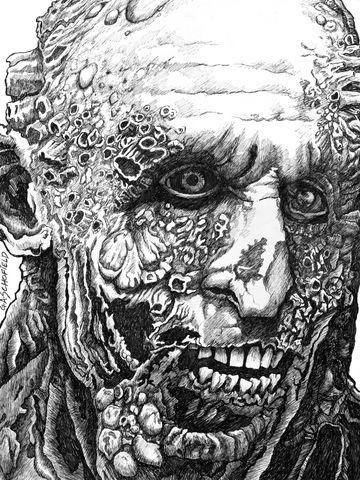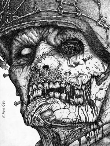 Designed for Call of Duty: WWll Nazi Zombies. If you notice the pattern on the right side, that's handmade silk paper. I cut off the white paper and mounted him against the silk which had a pattern that I liked for him. Just an experiment.