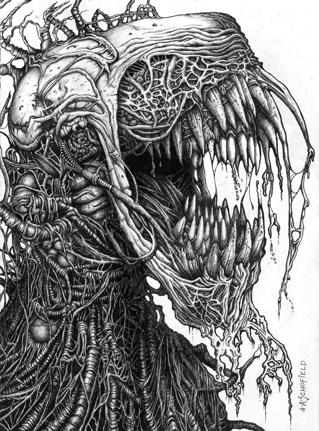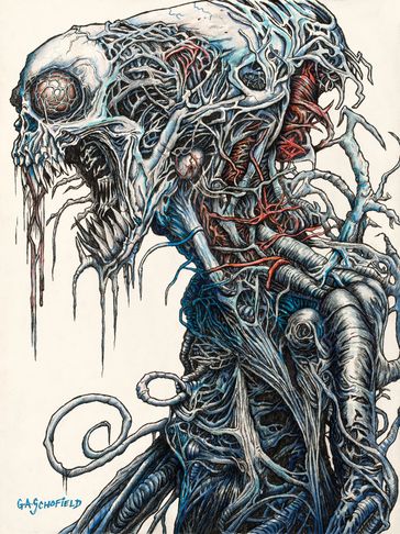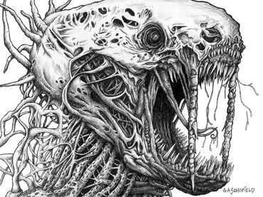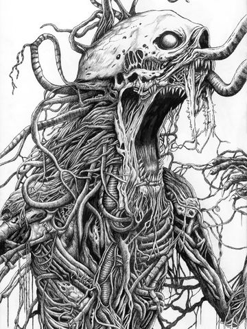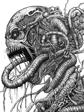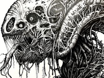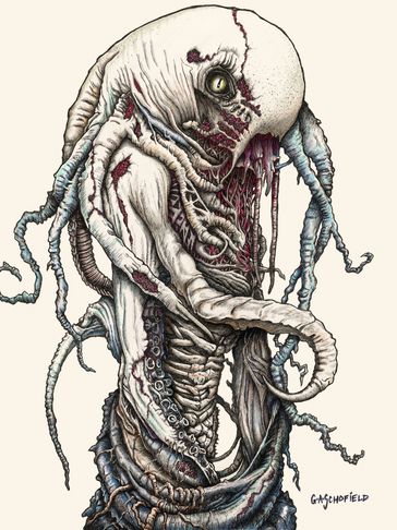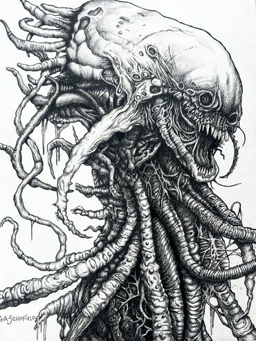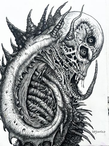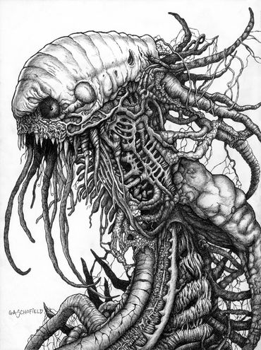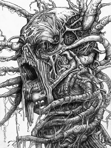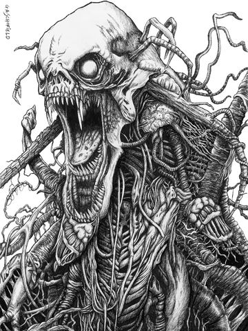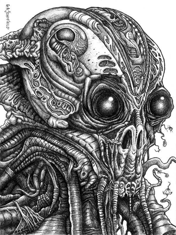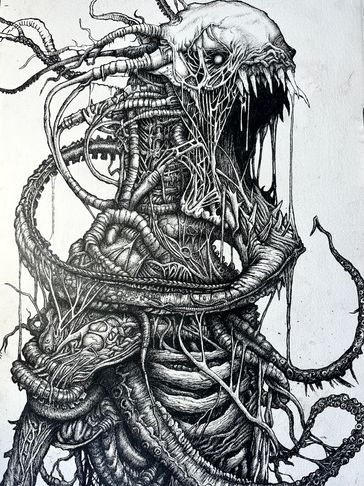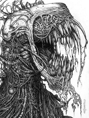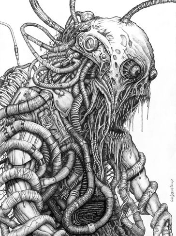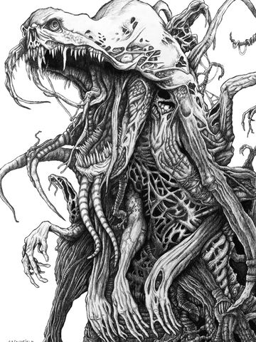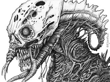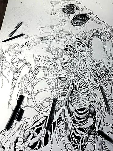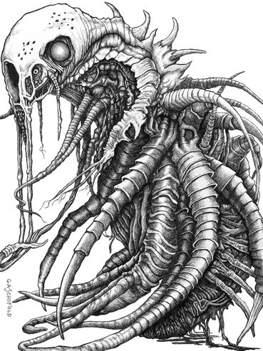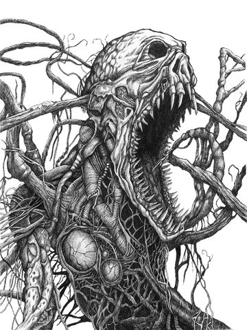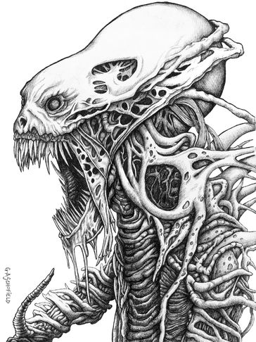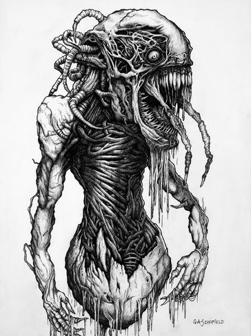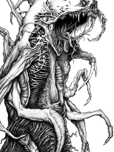 A collection of detailed and meticulously hand-drawn and inked "creatures" from the creator of the video game Dead Space and The Callisto Protocol.