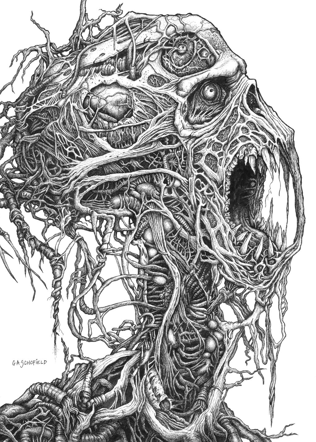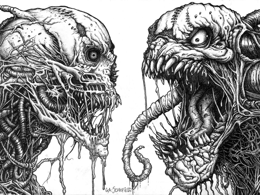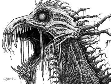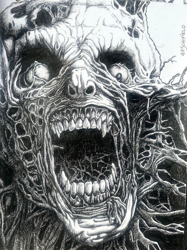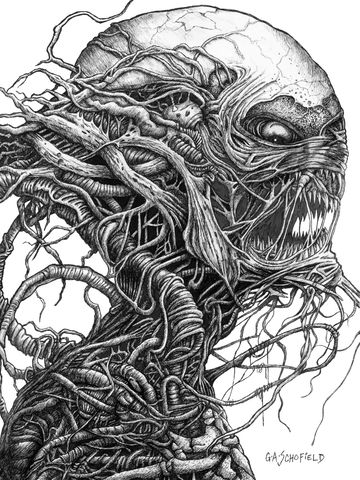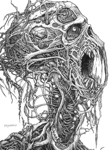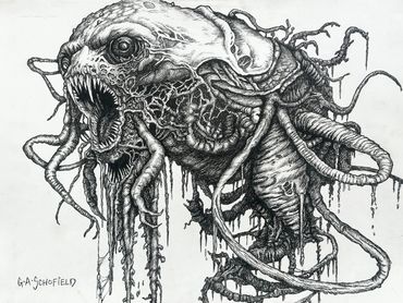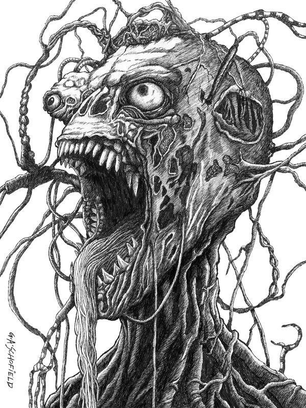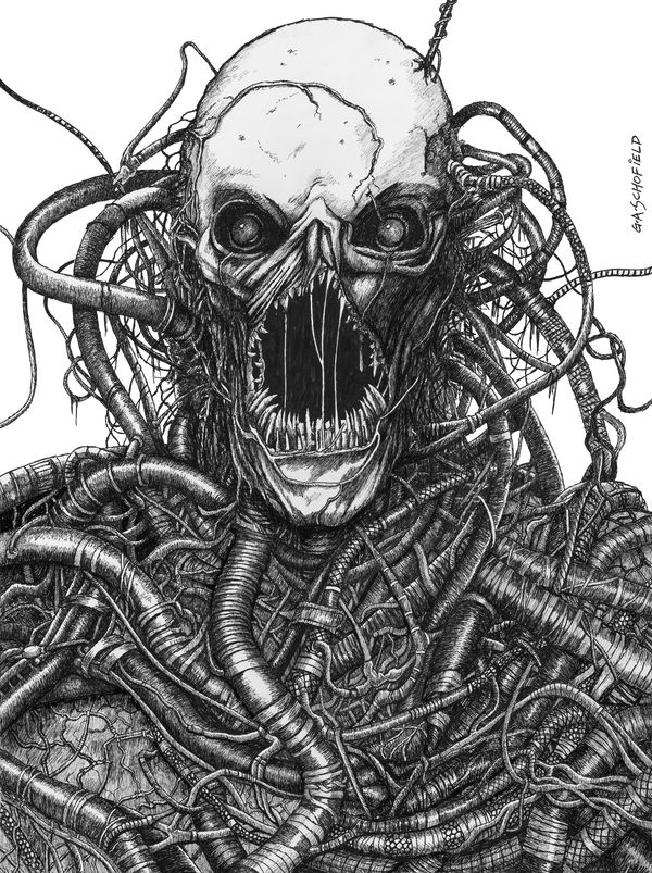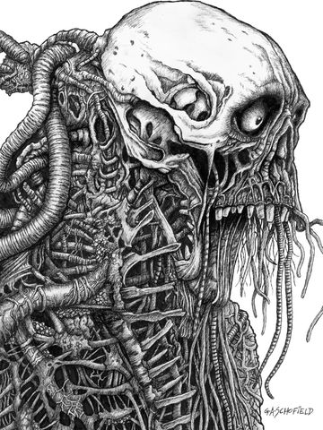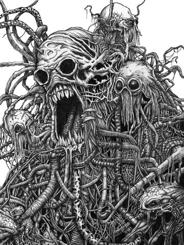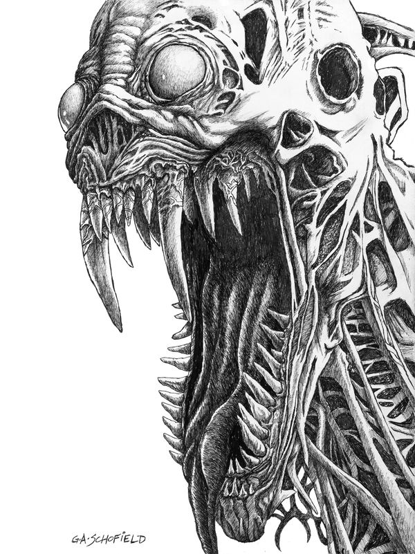 A collection of detailed and meticulously hand-drawn and inked "creatures" from the creator of the video game Dead Space and The Callisto Protocol.