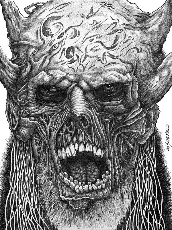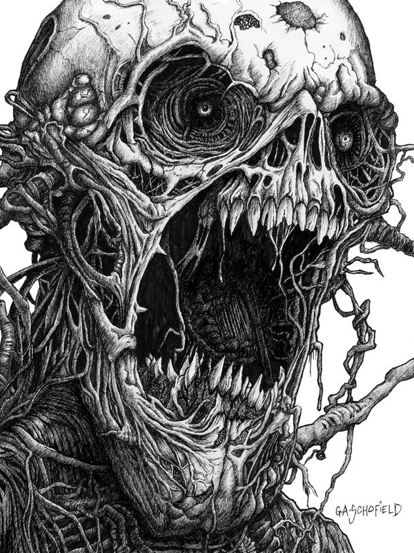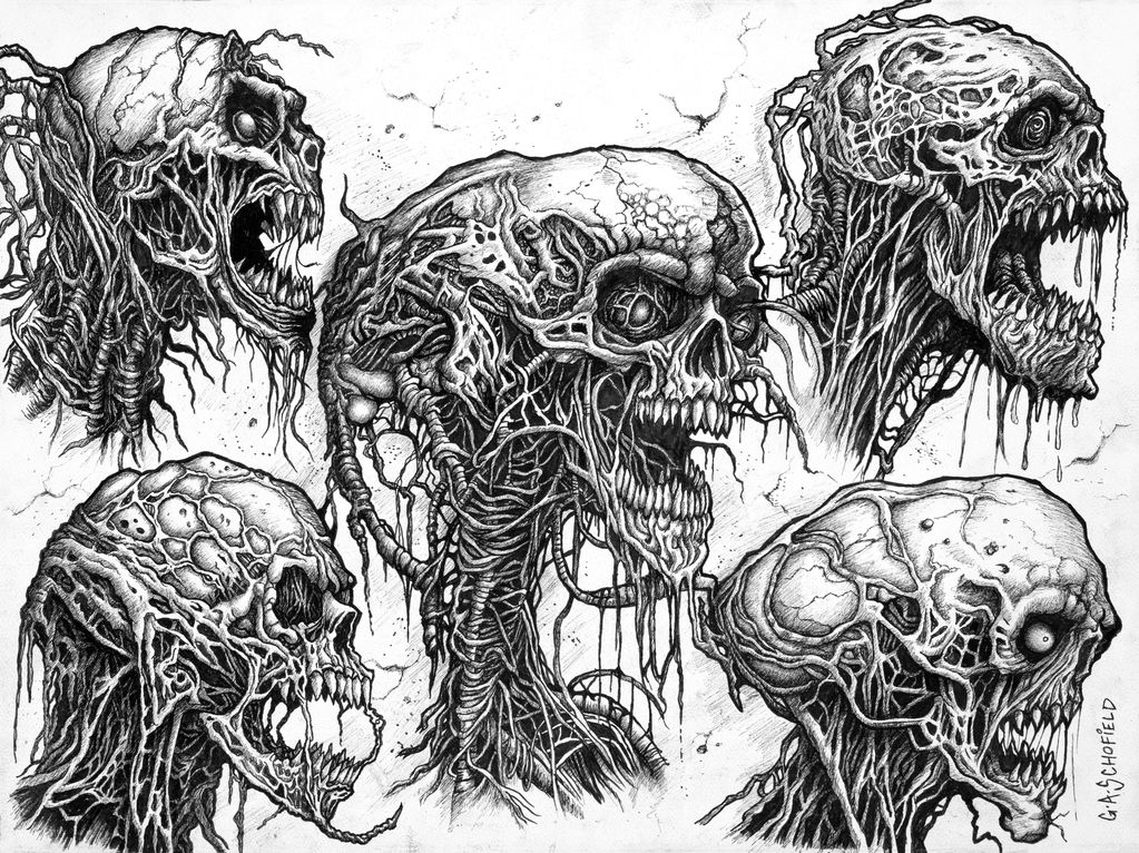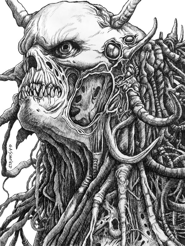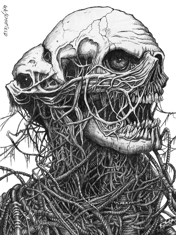 "Five Skulls" started out as some sketches while I was trying to design tattoos. I got a little out of control and ended up with these fellas. I still like them, just not sure if they're tattoo material.