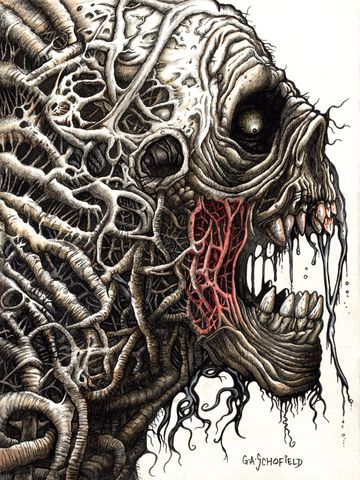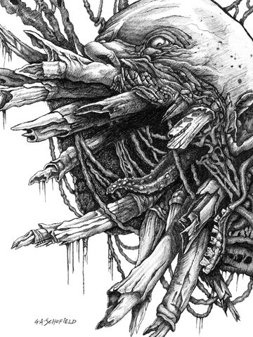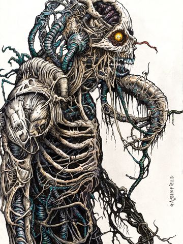 The Agath hails from a solitary planet inhabited solely by their race. They are profoundly devout, dedicating their lives to constant prayer and strict adherence to their gods' teachings. Any deviation from their prescribed way of life results in immediate death, often through gruesome means like skin removal. Despite facing such a fate, one Agath miraculously survived having their skin entirely torn off and was subsequently exiled from the planet. However, the trauma of his experience led him to descend into madness, forming a cult where followers willingly undergo the same ordeal. While his whereabouts remain unknown for years, there's speculation that he may have found solace on another planet with his devoted followers.