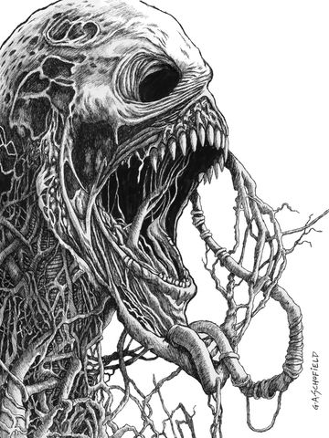 A colossal, snarling, sniveling, googling, goo-dripping entity. He’s a giant mouth. Yet, he's more than just that— a top-tier hitman, an unmatched assassin. Keep your distance. There are whispers, mere rumors really, of eyewitnesses claiming to see his head detach and soar off, leaving the body behind. Pure speculation.
