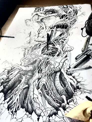 Driven by passion and curiosity, I went on a journey to explore the depths of imagination through a series I call “Creatures”. What started as a simple endeavor in black and white soon evolved into adding color, experimenting with techniques and adding scale.