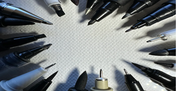 I use hundreds of pens a year but probably over a thousand pens during the making of the creatures series. I get pens from all over the world. I try them all out. I also use brush pens and whatever feels right for the character that I'm working on.
