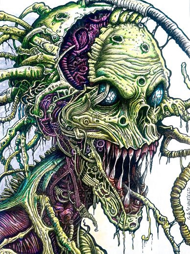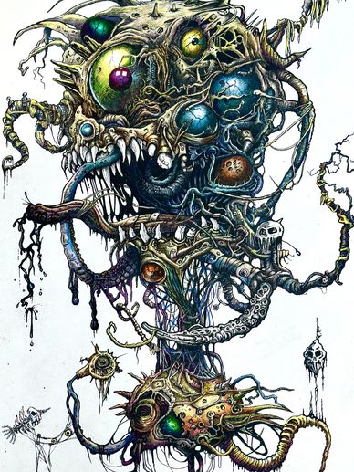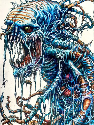 A collection of detailed and meticulously hand-drawn and inked "creatures" from the creator of the video game Dead Space and The Callisto Protocol.